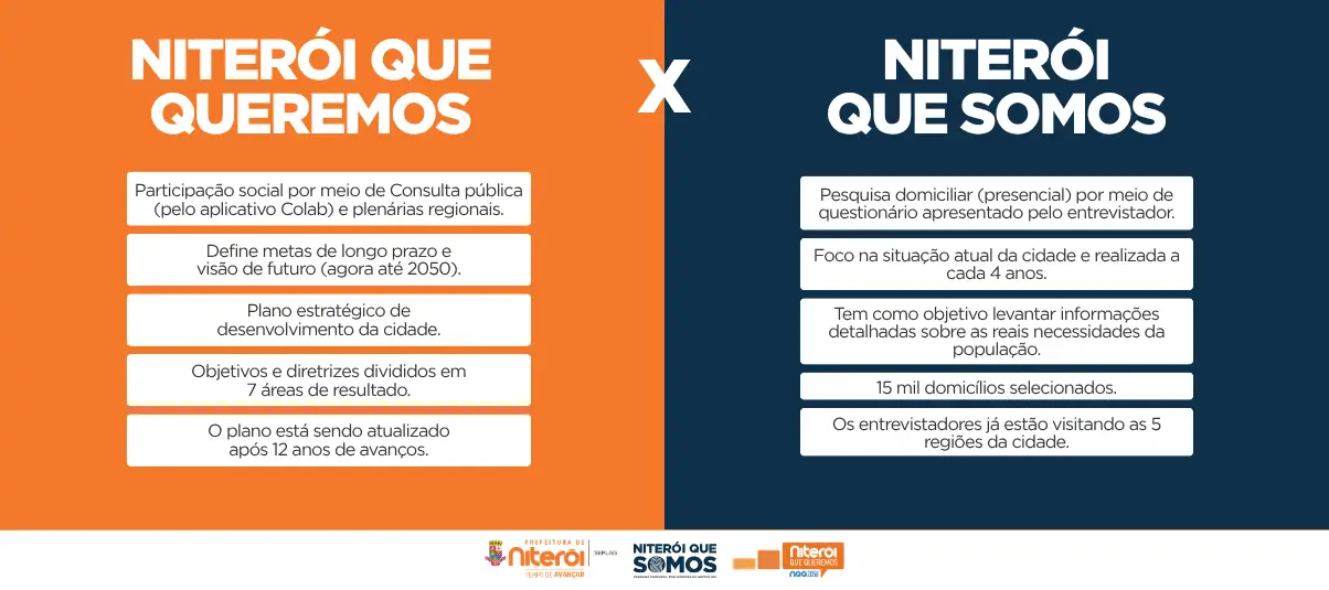 A “Niterói Que Somos” é uma pesquisa realizada pela Prefeitura de Niterói com o objetivo de compreender melhor a cidade e desenvolver políticas públicas mais eficientes e alinhadas com as reais necessidades da população.